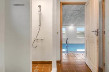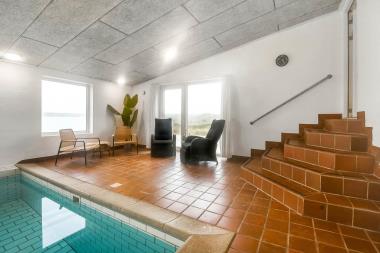 Sommerhus med stor swimmingpool. Huset ligger på en stor og kuperet natur/klitgrund og er en de mest efterspurgte grunde i området; kun 200 m fra Vesterhavet. Der er havudsigt fra grunden. Køkken med opvaskemaskine, microovn. Der er kombineret stue og køkken – i stuen findes brændeovn, farve-tv med DR 1. Parabol (kun tyske programmer) samt radio og bluetooth højtaler, som kan kobles op på en mobil enhed.. Trådløst Internetr. 2 badeværelser med gulvvarme, wc og brus. Poolrummet er indrettet med pool 8 x 4 x 1,45 m, fra poolerummet er direkte adgang til sauna ekstra bruserum i forbindelse med poolafdelingen. 4 soverum: DS + DS + 2ES + 2ES. Barnestol. Vaskemaskine og tørretumbler. Huset har centralvarme og elvarme. Gynger. Åben terrasse med havemøbler. Vand og energiomkostninger sommer ca. kr. 1500 til kr. 2000. Vinter fra kr. 2500 til kr. 3000 afhængig af vejret. 2 Husdyr tilladt.