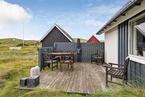Huset er beliggende på en ca. 1.250 m2 stor naturgrund. Fra opholdsstuen er der adgang til en dejlig terrasse med havemøbler, solvogne og grill som kan flyttes rundt efter behag. Dejligt hus, der er blevet rigtig flot moderniseret med respekt for den gamle stil. Huset ligger tæt ved Vesterhavet, der altid inviterer til en frisk gå- eller løbetur. Områdets købmand har sæsonåbent og ligger ca. 250 m fra huset og som i sæsonen byder på frisk morgenbrød. Her kan de daglige indkøb også klares. Også området madsted ligger ca. 3.000 m fra huset. 10 – 15 km fra huset kan flere aktiviteter og shoppingmuligheder nås. Så hvad enten I er til aktiv ferie eller total afslapning, danner dette feriehus en dejlig ramme både hvad angår hus, beliggenhed og omgivelser.