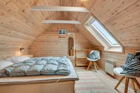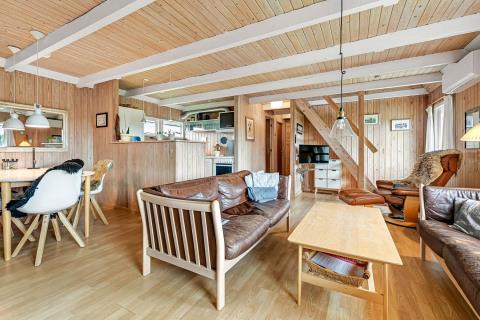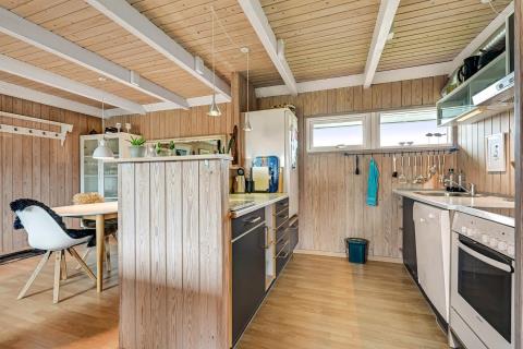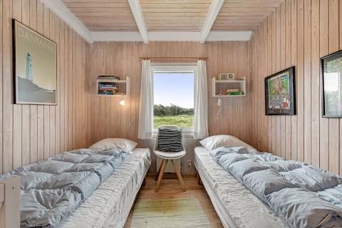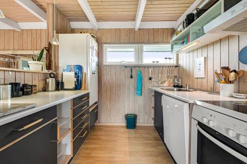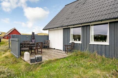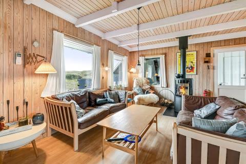 80 m2 stort feriehus med 3 soveværelser. I stueetagen er der 1 soveværelse (2ES) og på første etage er der 2 soveværelser (1DS, 2ES). Kombineret opholdsstue og køkkenhjørne med udsigt til de høje klitter ved Vesterhavet. Dejligt køkkenhjørne med bla opvaskemaskine, komfur med glaskeramiske kogeplader, emhætte, alt i service / køkkengrej og køleskab med fryseboks. Dejlig opholdsstue med lædermøbler, bluetooth højtaler og stejl trappe til 1. sal. Slap af foran den knitrende brændeovn som sammen med varmepumpen hjælper med at reducere udgiften til varmeregningen. TV med danske og tyske programmer samt mulighed for streaming af TV / radio / Apps via Chromecast, så har du en mobiltelefon eller et andet device med kan du streame hvad du nu har abonnement. Spisebordet er praktisk placeret lige ved køkkenhjørnet. Vaskemaskine og tørretumbler forefindes. Barneseng og barnestol til de små beboere. Praktiske hårde gulve i hele huset. Har man el-bil eller en Plug-In hybrid, så er der til huset et ladestik. Ikke-ryger hus. Husdyr ikke tilladt.