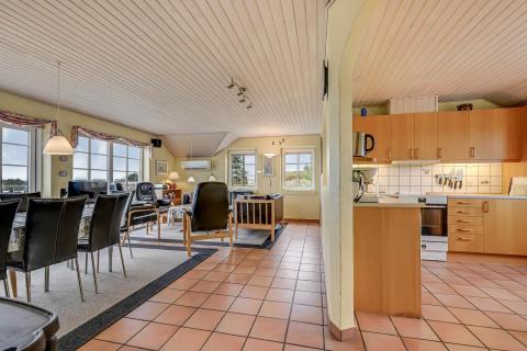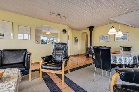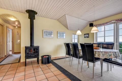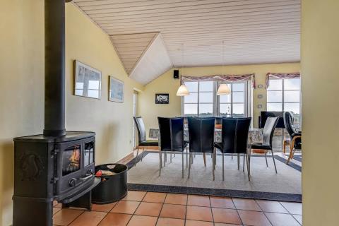 Huset er rummeligt og indbydende med plads til op til 8 personer, hvilket gør det perfekt til familier eller vennegrupper, der ønsker at tilbringe tid sammen i naturskønne omgivelser. Når du træder ind i huset, vil du straks føle dig hjemme. Denne energivenlige bolig er udstyret med moderne faciliteter som opvaskemaskine, vaskemaskine og tørretumbler, hvilket gør hverdagen nem og bekvem. De 4 soverum er komfortabelt indrettet, herunder to værelser med dobbeltsenge, et med to enkelte senge og et med køjeseng. I opholdsrummet sørger brændeovnen for en hyggelig atmosfære, hvor man kan samles om middage eller spille spil efter en dag i naturen.