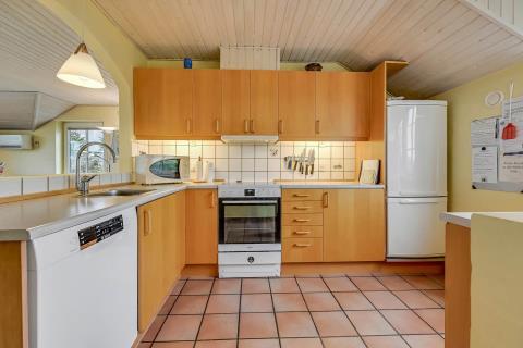 Køkken: El-komfur, køleskab, 60 l. fryser, opvaskemaskine.
