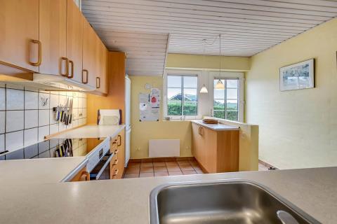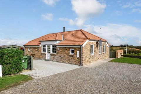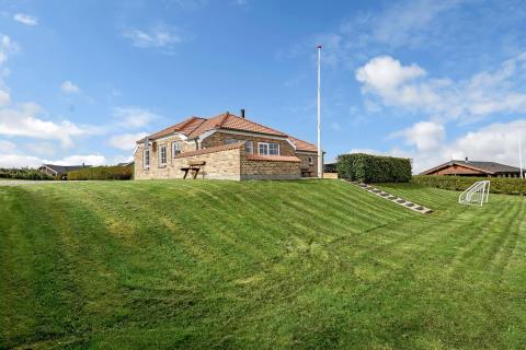 På en flot anlagt græsplænegrund ligger dette dejlige stenferiehus. Huset er opført i begyndelsen af 1999 i moderne stil med mange flotte detaljer. Huset er højt beliggende med en panoramudsigt over fjorden og området. Huset er moderne og flot udstyret overalt. Køkkenet og alrummet er adskilt med en stenvæg med en smart bue. Her er virkeligt et flot feriehus, som er alle tiders base til en vellykket ophold. I alt 40 m2 fliseterrasse. Flisegulv med løse tæpper. Gratis internetadgang.