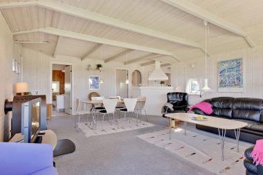 Huset har 3 soveværelser hvor af en er med dobbeltseng, en anden har dobbeltseng plus enkeltseng og det sidste har 2 enkeltsenge. Her er også en ekstra barneseng og barnestol til de helt små. Huset byder på 2 badeværelser hvor det ene har spa, bruser, toilet, håndvask og sauna samt gulvvarme. Det andet badeværelse har håndvask, toilet samt tørretumbler og vaskemaskine. Køkkenet fremtræder lyst og venligt med store vinduer og indeholder elektrisk komfur, køle/fryseskab samt mikroovn og opvaskemaskine. Stuen, som er kombineret med køkkenet, er møbleret med flotte møbler og er udstyret med brændeovn, fladskærm med danske kanaler, dvd og stereoanlæg med CD.