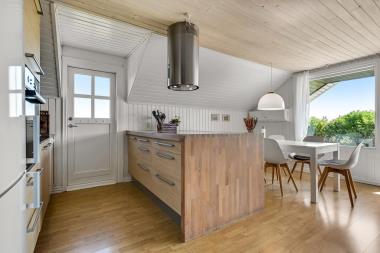 Feriehus på ca. 72 m2. fra 1979 og renoveret i 2018. Entréen byder jer velkommen og leder videre til en opholdsstue med hyggelig møblering, en brændeovn, spisebord samt TV med danske, tyske, norske og svenske kanaler. Derudover er der mulighed for streaming af egne streamingtjenester. Fra spisebordet er der flot kig til Limfjorden. Samtalekøkken med glaskeramiske kogeplader, indbygningsovn, emhætte, opvaskemaskine, mikroovn, og køleskab med fryseboks. Alt dette med praktiske trægulve. Derudover 3 mindre soveværelser med gulvtæpper. (1DS, 1DS, 1KS). Badeværelse med toilet, håndvask, bruser og linoleumsgulve. Vaskemaskine er i skuret. Der er desuden varmepumpe i huset, som gør elopvarmningen billigere.