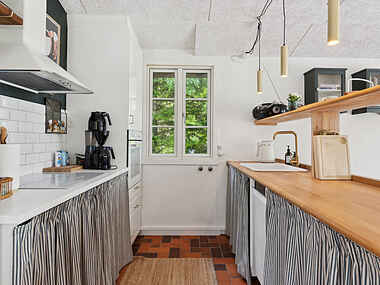 Udenfor er der god plads til at nyde solen og de stille omgivelser. Den udendørs pejs gør det muligt at forlænge aftenerne og samle sig omkring ilden, også når duggen falder. Her er plads til at slappe af – uden at blive forstyrret.