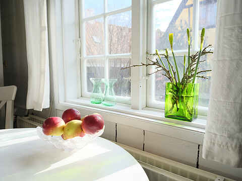Her kan du prøve at bo i et af de små originale huse med traditionens charme og indrettet med moderne faciliteter og komfort. Huset har klinkegulve og trægulve, så husk indesko.