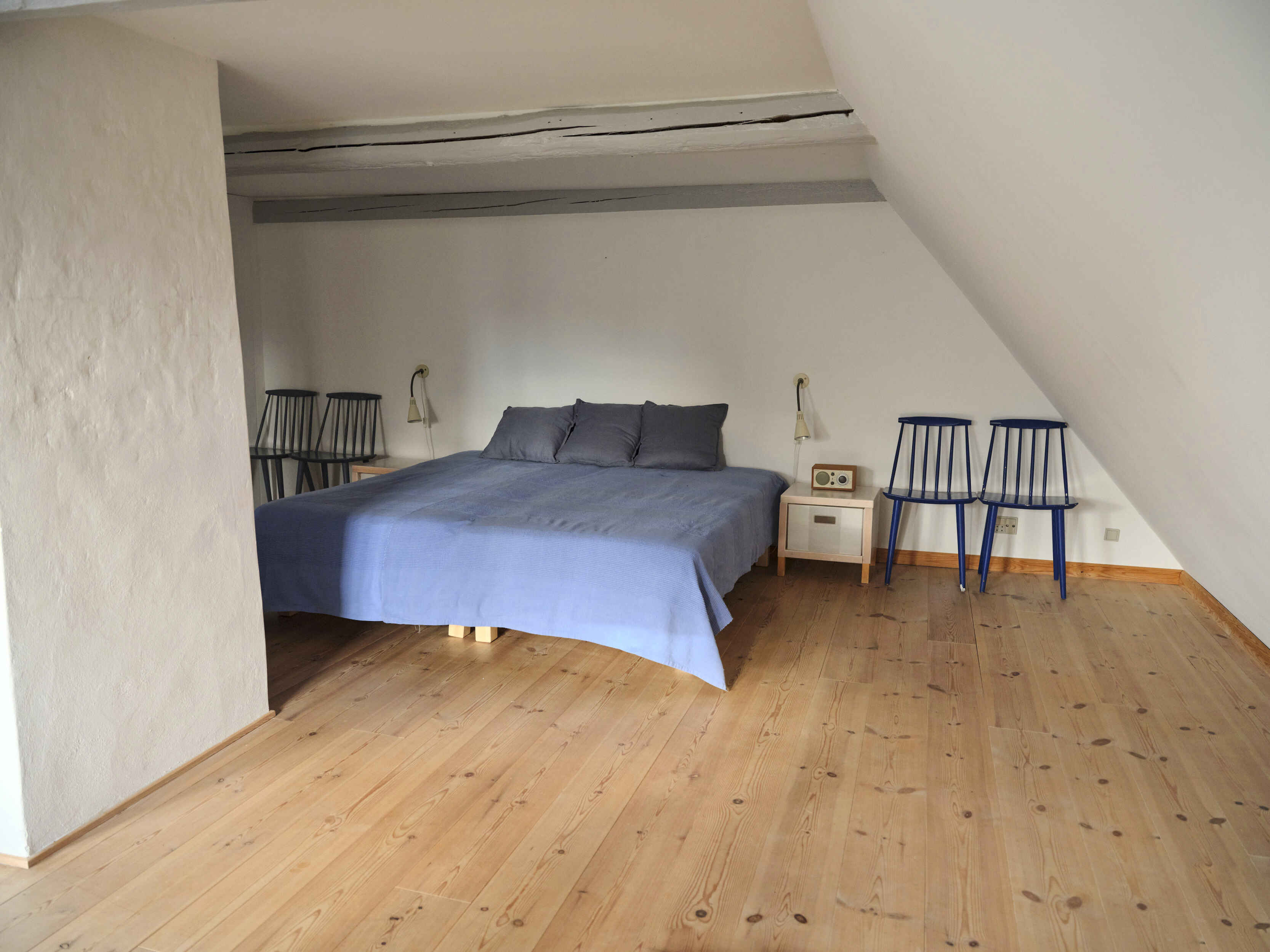 Overetagen har et stort og rummeligt værelse med to senge og mulighed for ekstra opredning.