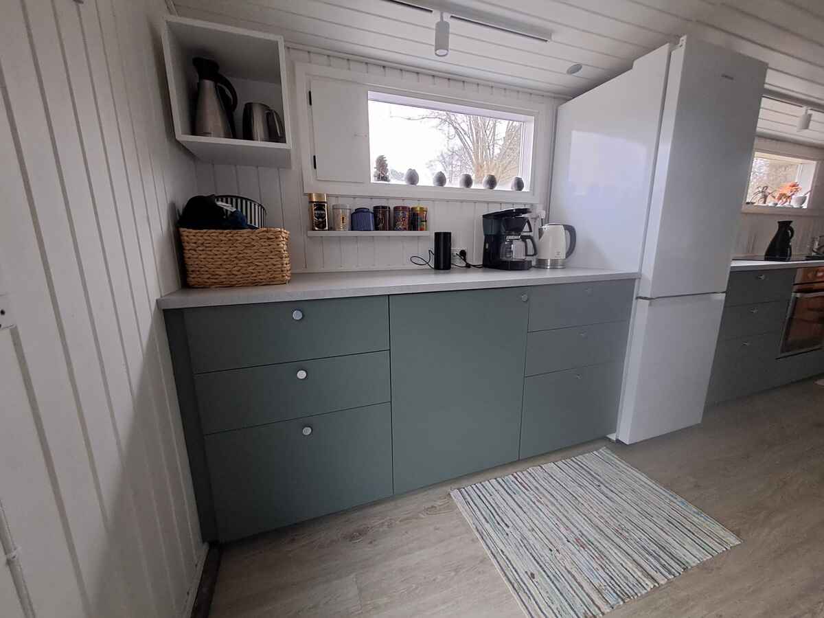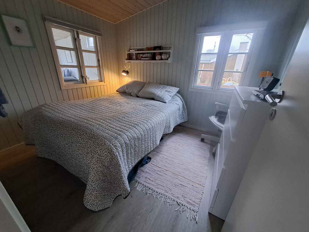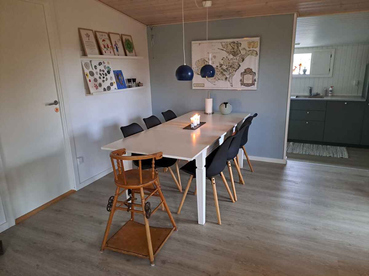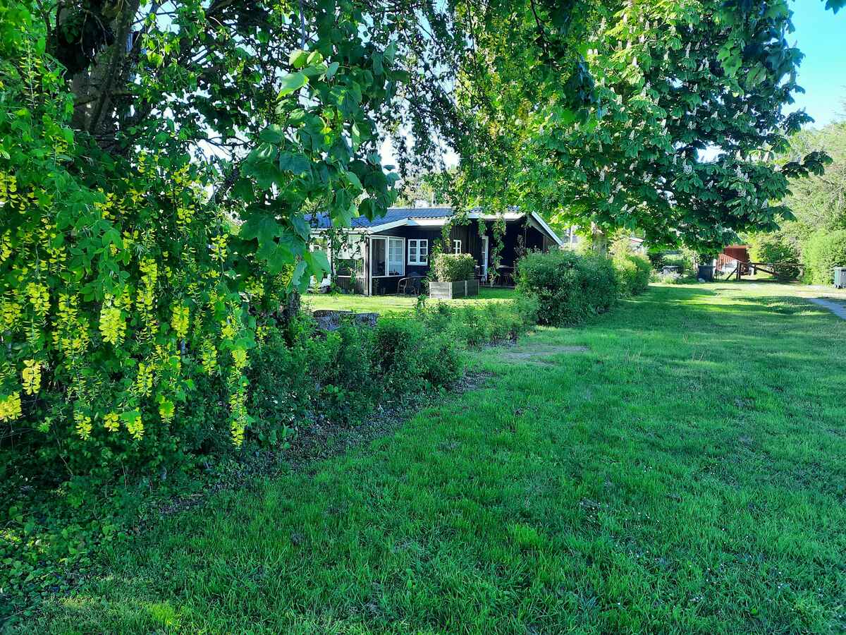 Nyrenoveret (2021–2024) sommerhus med nyt køkken, 2 soveværelser, hyggelig udestue med sovesofa og weekendseng til et barn.