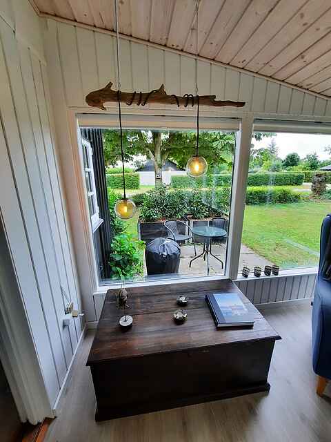 OBS: der er ét trin op fra køkken til stue. Det er ikke tilladt at medbringe dyr da vi ønsker at tilbyde et så allergivenligt hus til lejere som muligt.