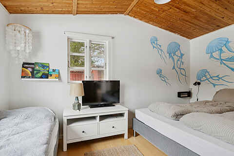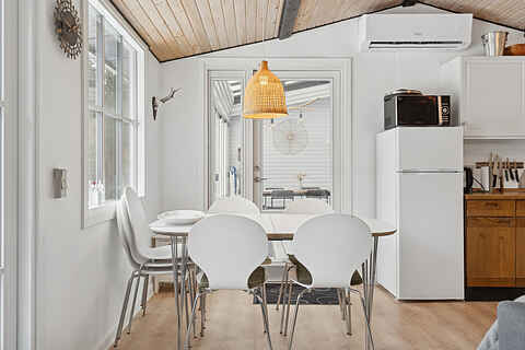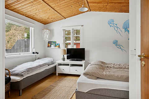 Hyggeligt sommerhus på 81 kvm med køkken-alrum, sofastue, udestue og tre gode værelser med plads til syv gæster og baby. Huset har to badeværelser, hvoraf det ene er nyrenoveret. Opført i 1974 og renoveret i 2025, så komforten er i top.