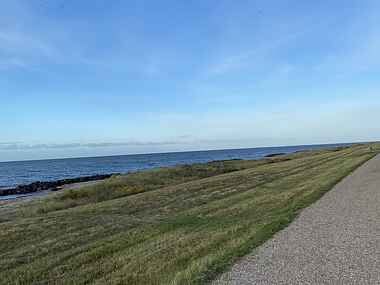 I kun 270 meter luftlinje fra huset venter en skøn badestrand, perfekt til både små og store. I gåafstand finder I også legeplads, fodboldbane, skov og det lange dige, som inviterer til cykelture, løb eller rolige gåture med udsigt over kysten.