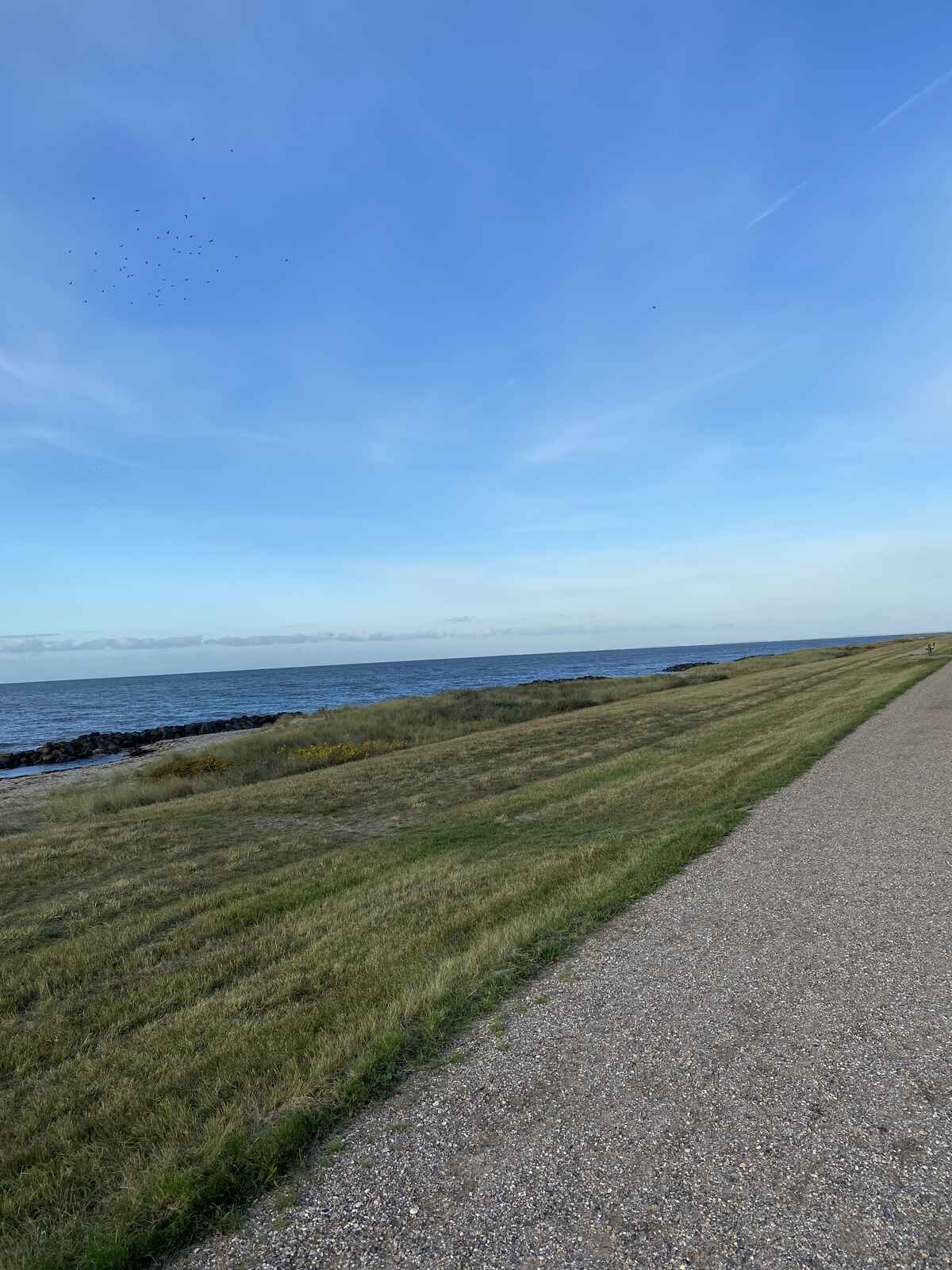 I kun 270 meter luftlinje fra huset venter en skøn badestrand, perfekt til både små og store. I gåafstand finder I også legeplads, fodboldbane, skov og det lange dige, som inviterer til cykelture, løb eller rolige gåture med udsigt over kysten.