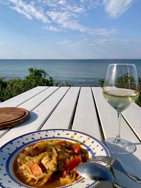 Unikt beliggende og charmerende familieferiehus, originalt men helt up-to-date, og hyggeligt indrettet med fine detaljer og en skøn panoramaudsigt over vandet. Gratis internet.