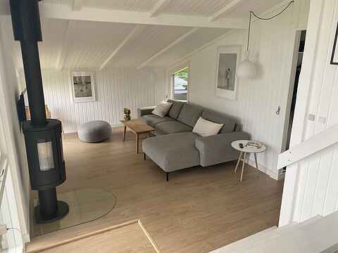Vi er 3. generationsejere af sommerhuset og har i 2022 fået det moderniseret og renoveret med materialer og møbler af høj kvalitet, så det står skarpt i forhold til at danne rammen for det dejligste ferieophold på Bornholm for både jer og vores egen familie. Især vil vi fremhæve de 2 dejlige opholdstuer i forskudt plan, hvor der kan slappes af i en af sofaerne eller omkring bordet med spil, hygge og god mad. Herfra er der udgang til en stor ny terrasse møbleret med bord og stole, parasol og 2 liggestole med hynder.