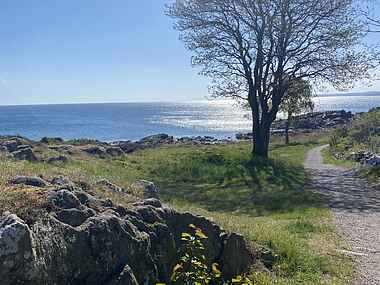 I området omkring sommerhuset finder I alt, hvad I behøver for en god ferie. Personligt elsker vi at gå de 500 m. til det nærmeste røgeri og købe lækker fisk med hjem til frokostbordet, eller at tage et picnickurv ned på klipperne og nyde aftensolen og den fuldstændig fantastiske udsigt over hav og klipper. Man skal heller ikke snyde sig for den flotteste gåtur på kanten af havet fra Næs til Sandkås.