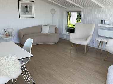 Vi er 3. generationsejere af sommerhuset og har i 2022 fået det moderniseret og renoveret med materialer og møbler af høj kvalitet, så det står skarpt i forhold til at danne rammen for det dejligste ferieophold på Bornholm for både jer og vores egen familie. Især vil vi fremhæve de 2 dejlige opholdstuer i forskudt plan, hvor der kan slappes af i en af sofaerne eller omkring bordet med spil, hygge og god mad. Herfra er der udgang til en stor ny terrasse møbleret med bord og stole, parasol og 2 liggestole med hynder.