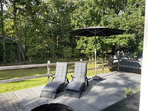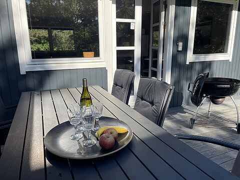 Der er solvogne, hængekøje, parasoller, legeredskaber, stigegolf og grill til rådighed. Er vejret i det køligere lune, kan der skabes hygge rundt om den udendørs pejs.