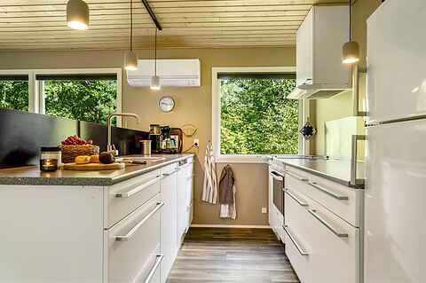 Med de mest almindelige bekvemmeligheder som varmepumpe, brændeovn, opvaskemaskine, mikrobølgeovn, internet og smart-tv, kan huset være centrum for masser af hygge med familie, børn og venner, hvad enten det er i fællesskab over et af husets brætspil eller i en anden verden formidlet af en gribende bog eller en god film.