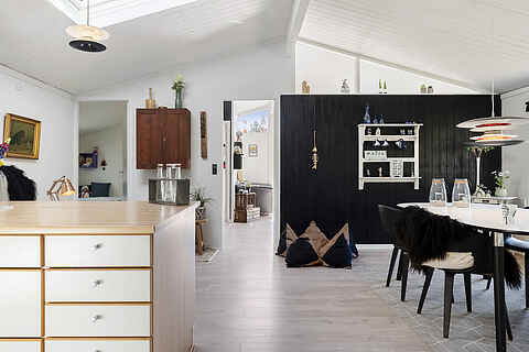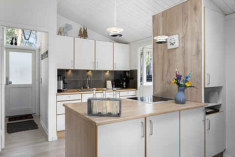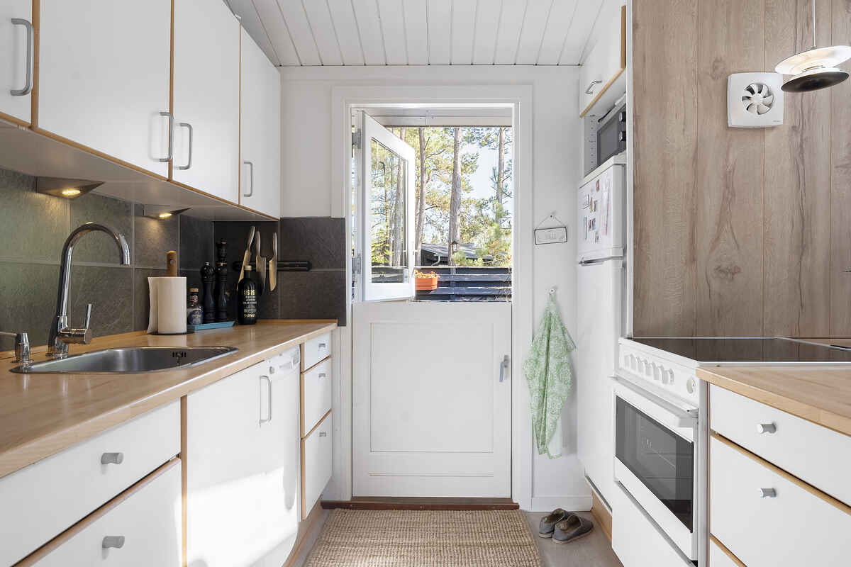 Sommerhuset rummer 3 gode soveværelser, et stort og lyst køkken/alrum samt en rummelig stue med dejlig udsigt over naturgrunden. Her er rammerne sat for afslappede feriedage og lange aftener med brætspil, madlavning og hygge.