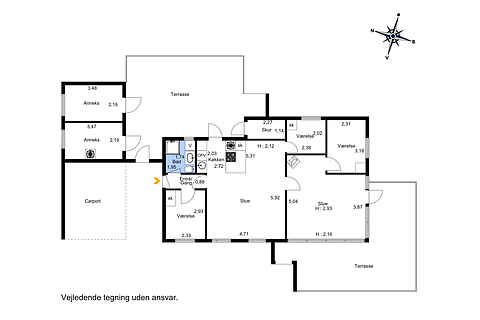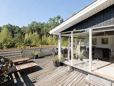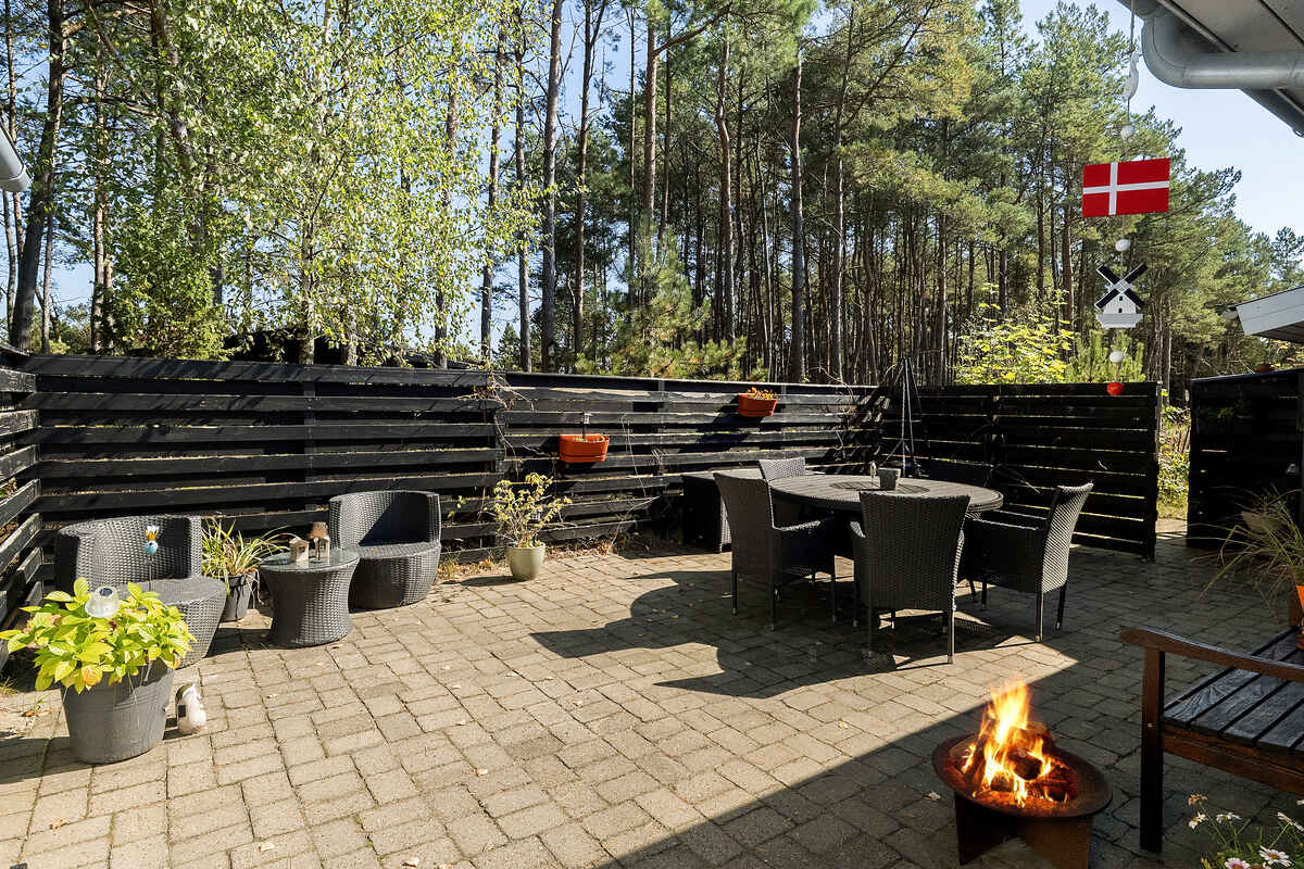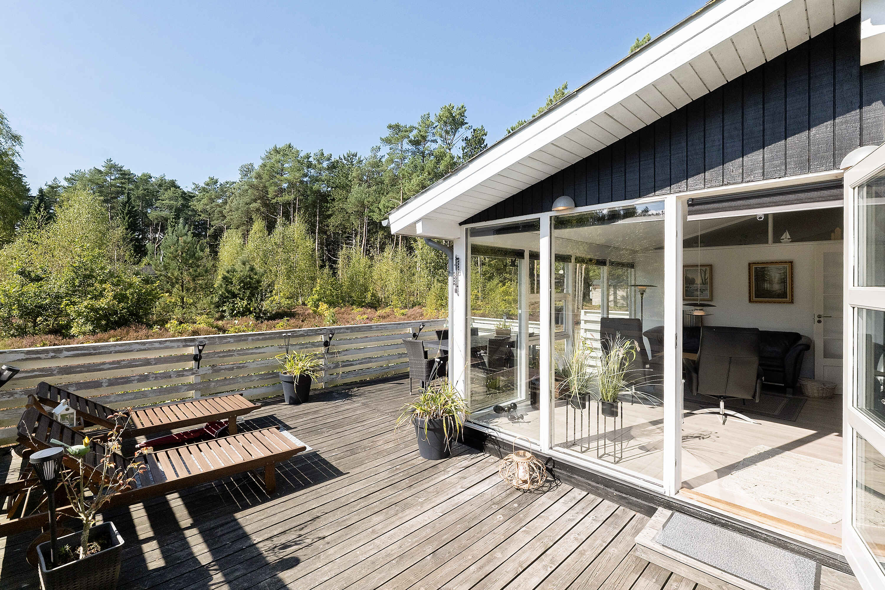 Udendørs venter en skøn naturgrund og flere terrasser, hvor I kan nyde morgenkaffen i solen, slappe af med en god bog eller tænde grillen om aftenen, mens dagen rundes af i ro og fred.