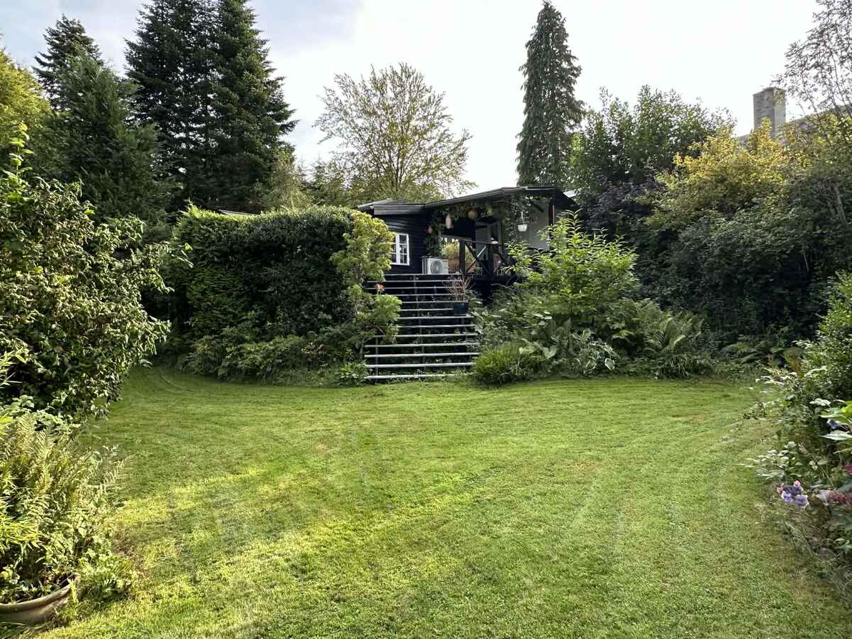 Sommerhuset ligger omgivet af skov og træer, med en stor, frodig og stemningsfuld have. Der er opsat en luksus udebruser og sauna med direkte udsigt til naturen, hvor man kan slappe af og nyde lyden af vinden i træerne og fuglesang.