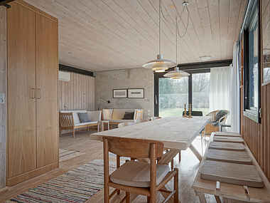 Dette luftige sommerhus kombinerer moderne minimalisme med den hjertevarme, som er uundværlig for en ægte sommerhusatmosfære. Med sine to elegante badeværelser, et stort veludstyret køkken, en indbydende stue med både sofa og seng samt fire skønne soveværelser, kan huset byde op til 8 personer velkommen.