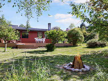 Haven omfavner jer med et væld af grønne planter. Gå på opdagelse i de vilde blomsterbede, saml bær og frugter fra de frodige buske og træer. Slap af på den overdækkede terrasse og nyd roen i den private have, mens børnene skaber snobrødsminder ved bålstedet. I sommerhuset finder I også cykler, der indbyder til lange, forfriskende ture i Odsherreds bakkelandskab. Stranden, en af Danmarks bedste børnevenlige sandstrande, ligger blot 15 minutters gang væk.