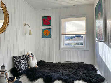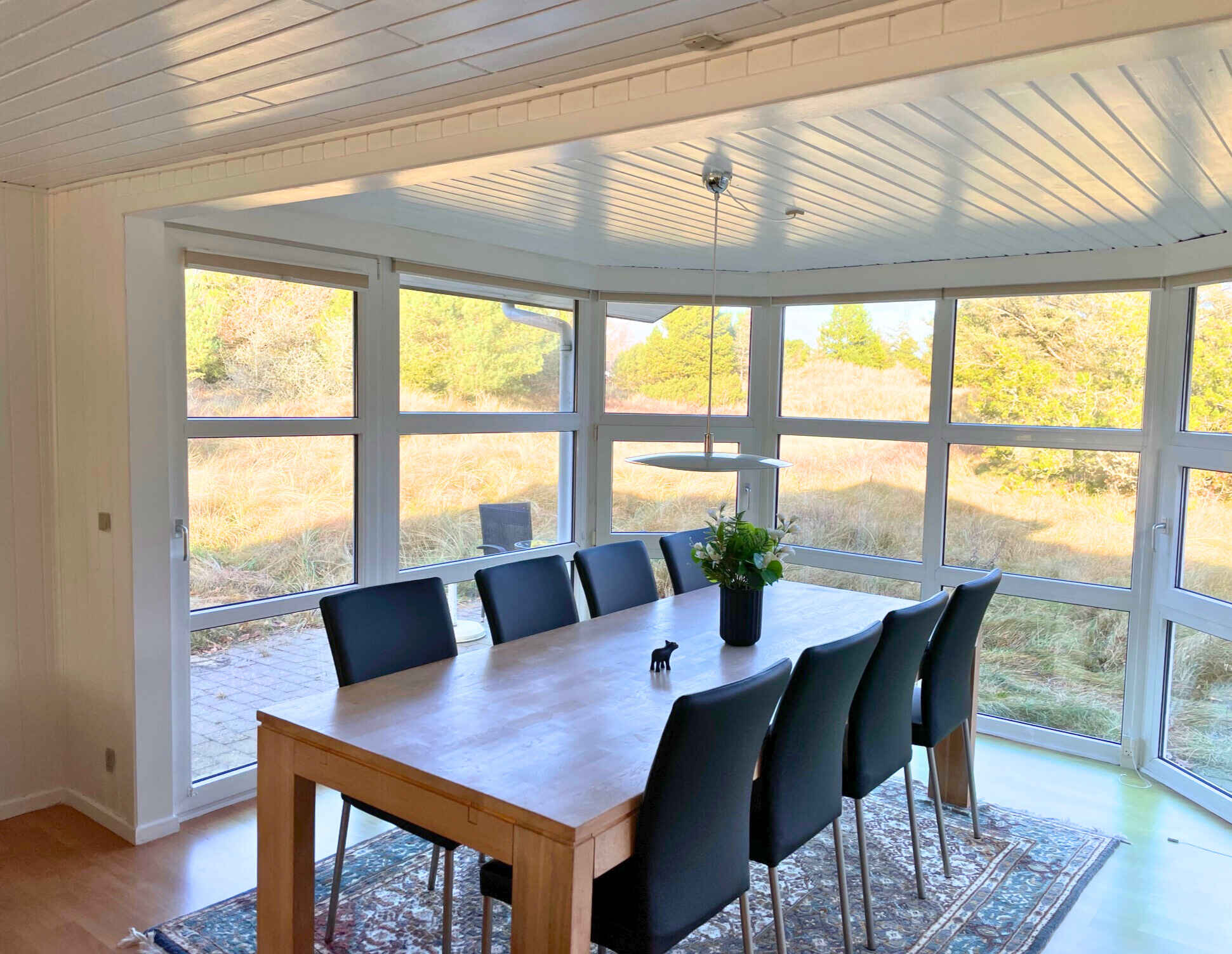 Træd ind i et lyst og indbydende sommerhus, hvor store karnapper lader dagslyset strømme ind og giver en skøn forbindelse til naturen udenfor. Det åbne, fuldt udstyrede køkken indbyder til fælles madlavning, mens spisepladsen danner rammen om hyggelige aftener med spil og samtaler. Indretningen emmer af komfort og ro – perfekt til afslapning året rundt.