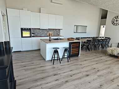 Når I træder indenfor, mødes I af lyse rum, moderne møbler og en atmosfære, der inviterer til afslapning. Den åbne stue og køkken danner hjemmets hjerte – perfekt til fælles madlavning, lange middage og hyggestunder foran biopejsen – feks. med god musik fra bluetooth højtaleren, spil eller en god film på stuens tv som har chromecast.