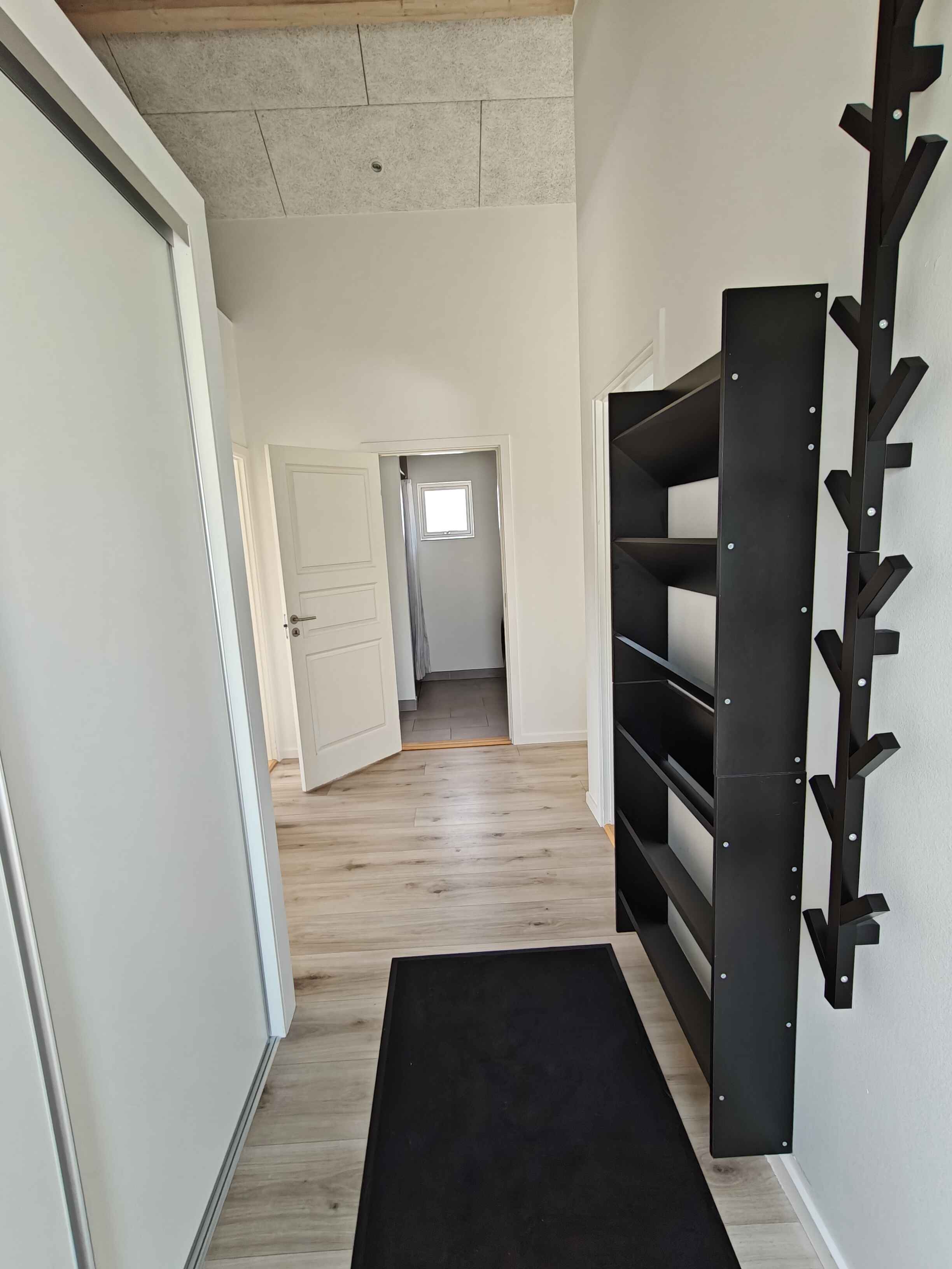 Når I træder indenfor, mødes I af lyse rum, moderne møbler og en atmosfære, der inviterer til afslapning. Den åbne stue og køkken danner hjemmets hjerte – perfekt til fælles madlavning, lange middage og hyggestunder foran biopejsen – feks. med god musik fra bluetooth højtaleren, spil eller en god film på stuens tv som har chromecast.