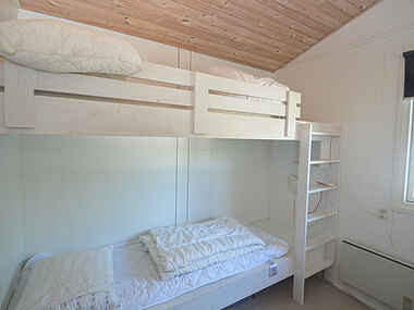 Huset har 3 soveværelser med i alt 5 sovepladser: 1 med dobbeltsenge, 1 med enkeltseng og 1 med køjeseng. Derudover er der to badeværelser med bruseniche, hvilket giver god komfort for flere gæster.