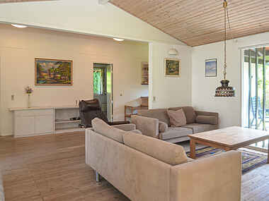 Det rummelige sommerhus på 104 m² byder på god plads til både familier og små grupper, der ønsker en afslappende ferie tæt på vand og naturoplevelser. Den store have og den solrige træterrasse gør det let at nyde dagene udendørs.