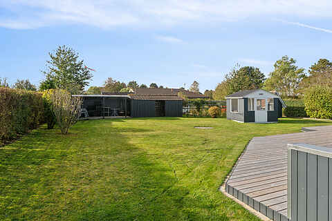 I haven er legehus med forskelligt legetøj til de mindste. Der er desuden Krocket spil, Kongespil og fodboldmål.