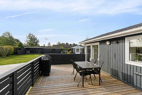 Der er havemøbler og gasgrill.