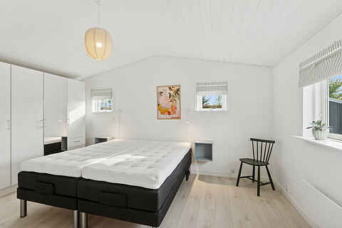 Der er tre soveværelser med dobbeltsenge. Det ene soveværelse er i annekset. Annekset er 12 m2 og helårsisoleret. Annekset er er placeret tæt på boligen.