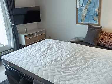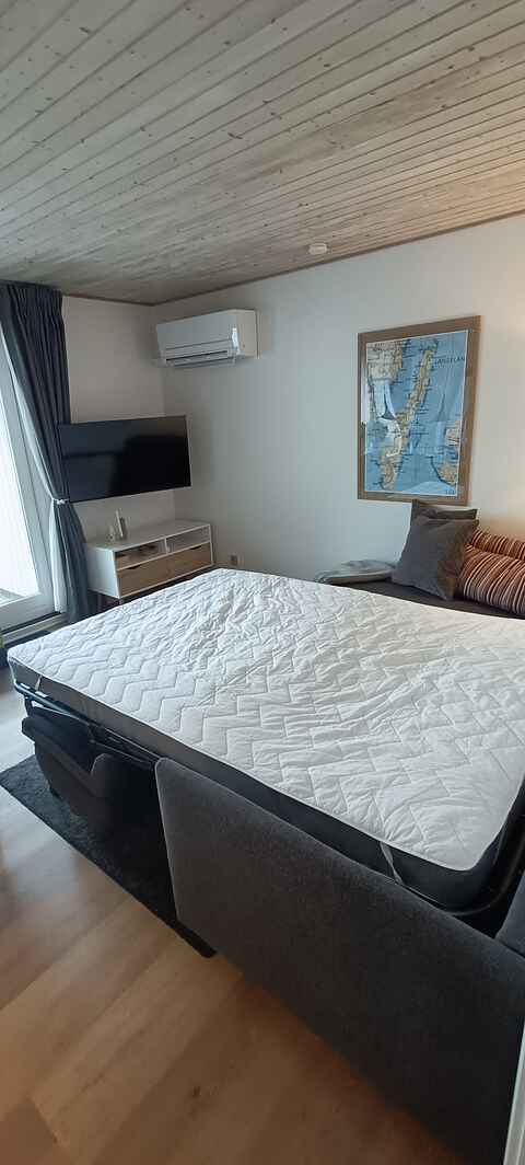 Lejligheden er praktisk indrettet med fjernsyn og internet, så der er mulighed for både afslapning og underholdning under opholdet. Rammerne er enkle og funktionelle, med fokus på ferie og nærvær.