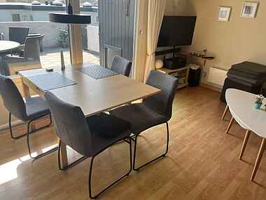 Der er wifi, TV og køkkenudstyr til feriens måltider. I fælleshuset er der vaskemaskine og tørretumbler. Dyner og puder er i huset, men husk selv linned og håndklæder. Der er desuden ladestandere til elbil på p-pladsen.
