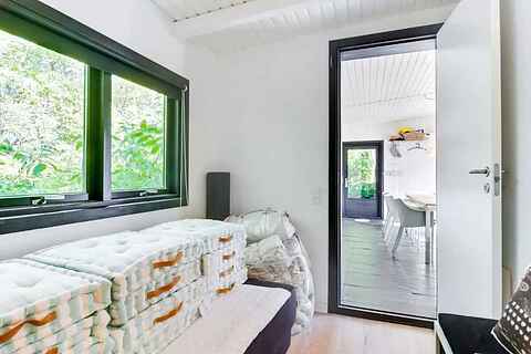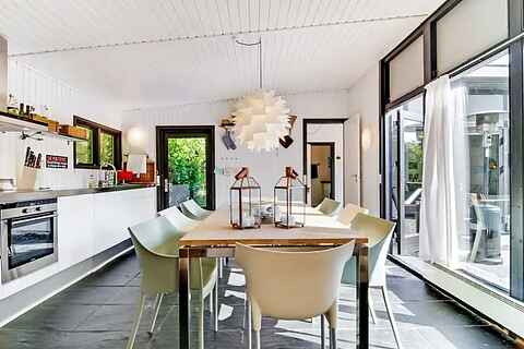 Huset ligger blot 50 meter fra en skøn badestrand og vender mod sydvest, hvilket sikrer solrige dage uden vind på terrassen. Der er elbilopladning og moderne faciliteter i huset.