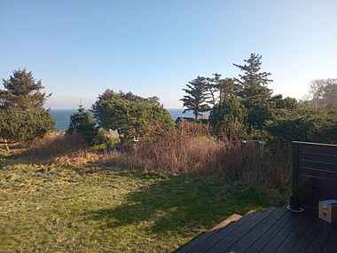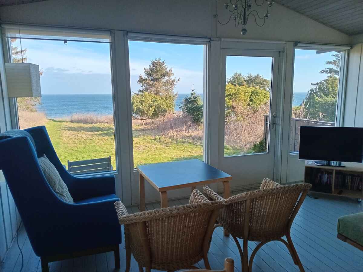 Fra opholdsrummet er der adgang til en stor altan med udsigt over havet. Her kan dagen starte med morgenkaffe til lyden af bølger og slutte med solnedgang over vandet. Stranden ligger kun 100 meter fra huset.