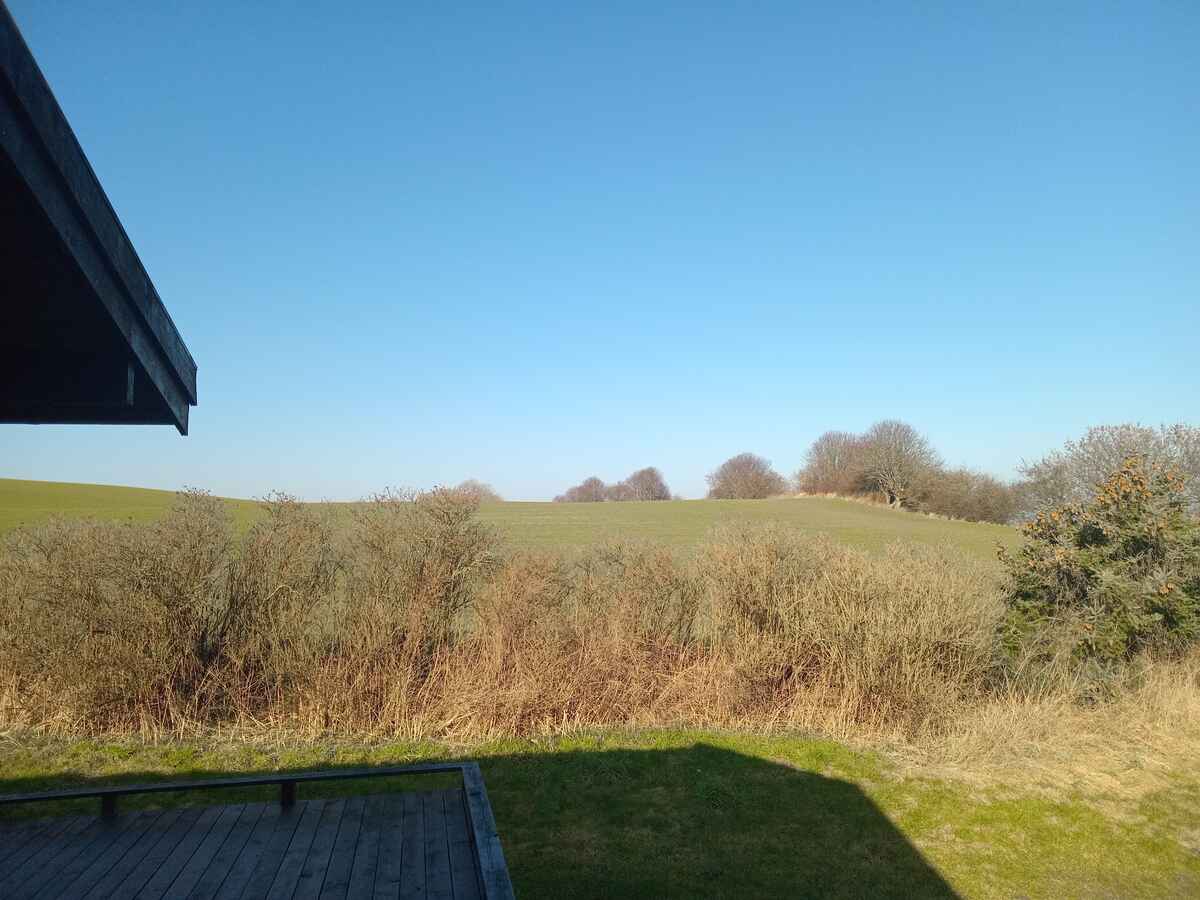 Her får I et sommerhus med udsigt, ro og en beliggenhed, der sætter rammerne for en afslappet ferie tæt på havet.