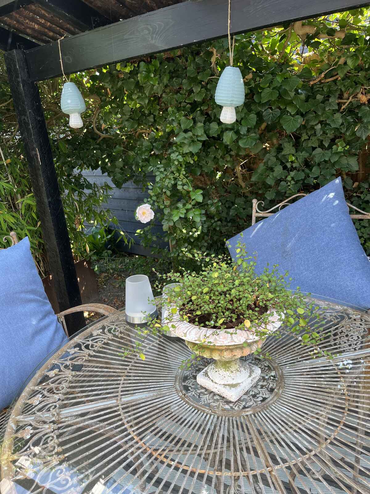 Terrassen fungerer som et ekstra rum mod naturen. Her kan man nyde stillheden, lytte til vinden i træerne eller lade børnene lege frit på grunden, selv når solen står lavt.