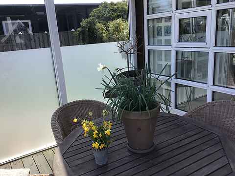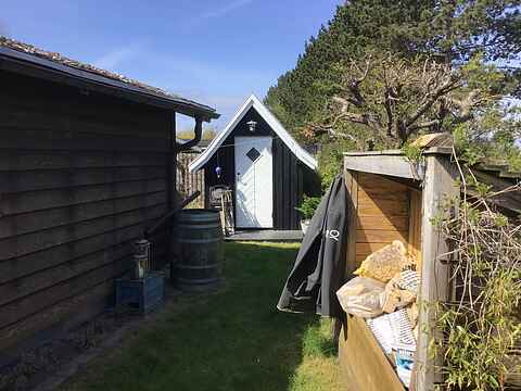 Huset indeholder alle de faciliteter, man behøver for et ubesværet ophold uden for sommersæsonen. Fra stuen er der direkte adgang til en stor træterrasse med markise, som kan bruges på milde dage eller til en kop kaffe i den friske luft. Det er også en overdækket pergola