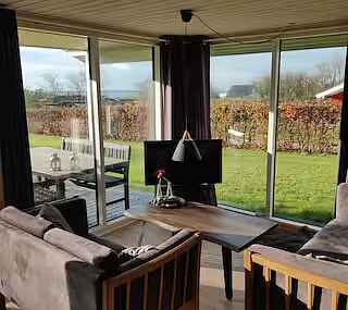 Fra terrassen kan udsigten over fjorden nydes i ro og gode omgivelser. Haven giver mulighed for både leg, afslapning og hyggelige aftener ved ilden. Brænde kan købes i området.
