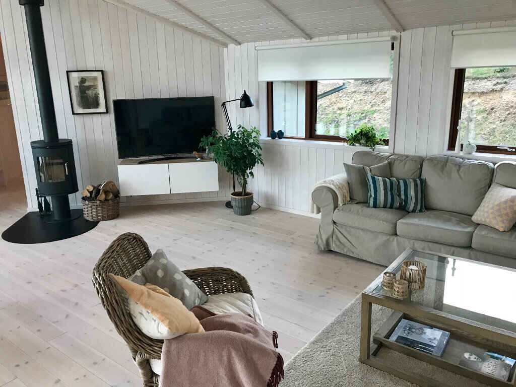Huset er på hele 146 m2, har gulvvarme og med varmepumpe. Udover at ligge midt i en enestående natur, så er huset fuldt udstyret til den perfekte ferie. Her er åbent køkken i forbindelse med den store stue, hvor der bl.a. er brændeovn. Der er TV med både danske og internationale kanaler, ligesom der naturligvis er internet.