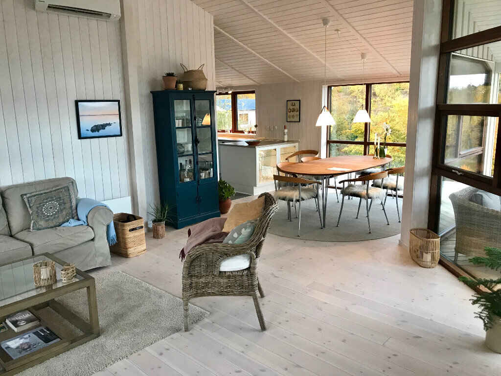 Huset er på hele 146 m2, har gulvvarme og med varmepumpe. Udover at ligge midt i en enestående natur, så er huset fuldt udstyret til den perfekte ferie. Her er åbent køkken i forbindelse med den store stue, hvor der bl.a. er brændeovn. Der er TV med både danske og internationale kanaler, ligesom der naturligvis er internet.