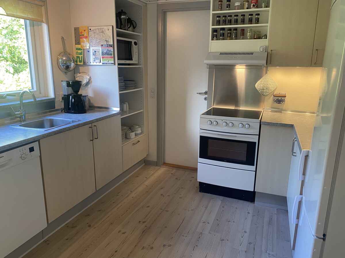 Huset har et aflåst ekstra-rum med yderligere et køle- og fryseskab, hvis I har brug for ekstra køle/fryse kapacitet på de varme dage. Det er tilgang til rummet fra terrassen, og lejerne må gerne låse sig ind i dette rum.
