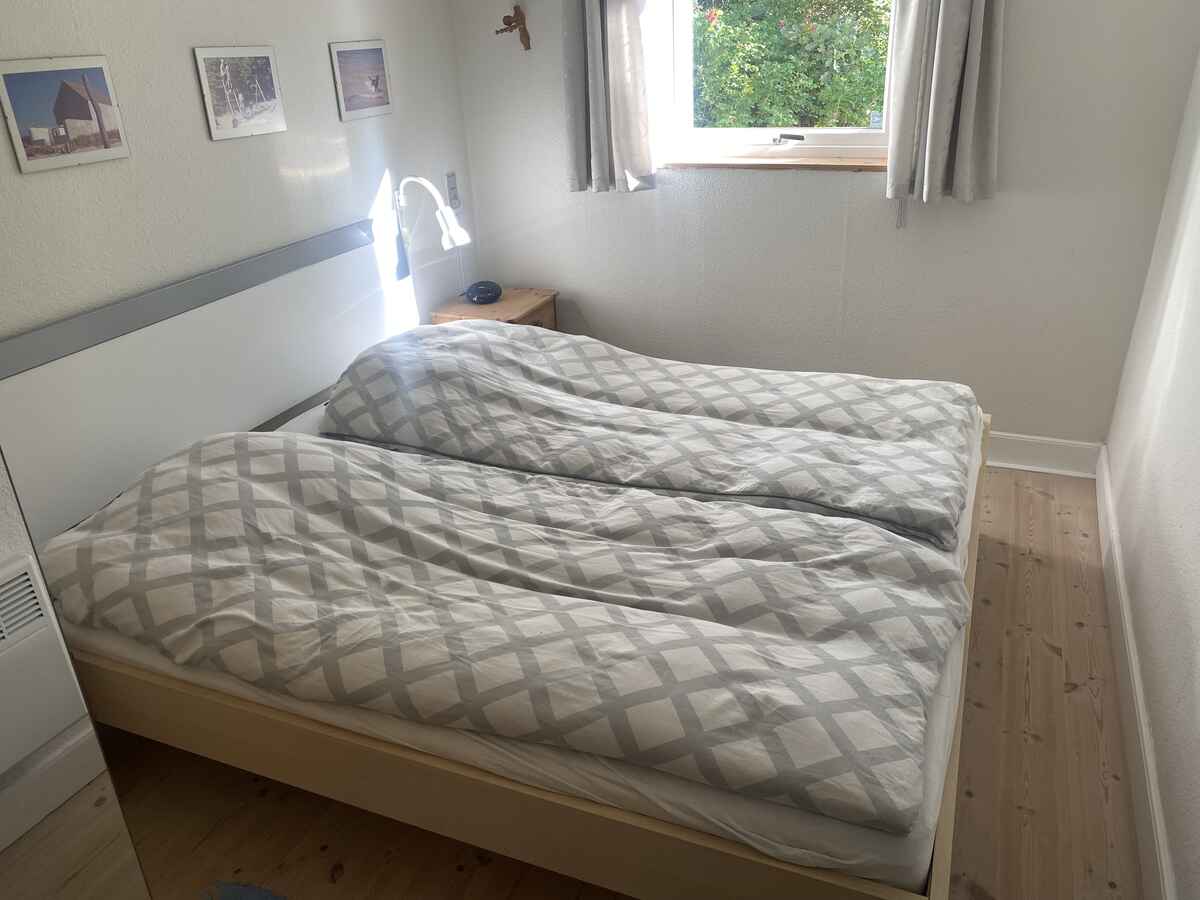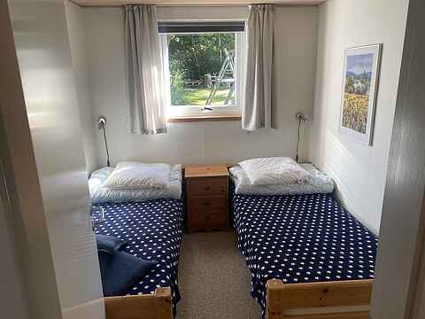 Huset har 3 soveværelser. Det ene soveværelse er indrettet med en dobbeltseng og det andet med to enkeltsenge. Det tredje soveværelse har køjesenge med i alt 4 sovepladser. Her kan børnene rigtig hygge sig om aftenen og nyde feriestemningen.