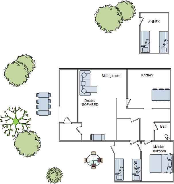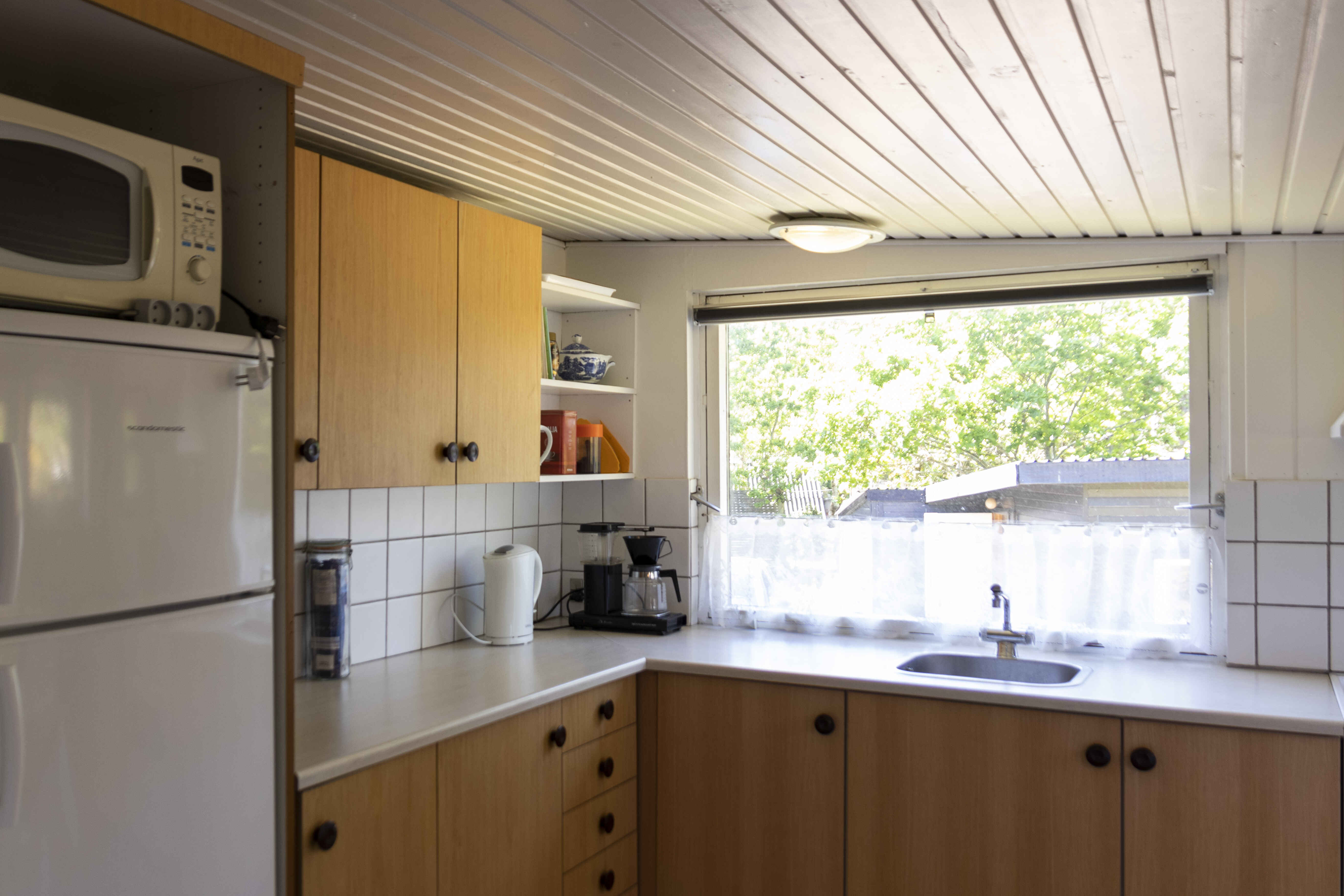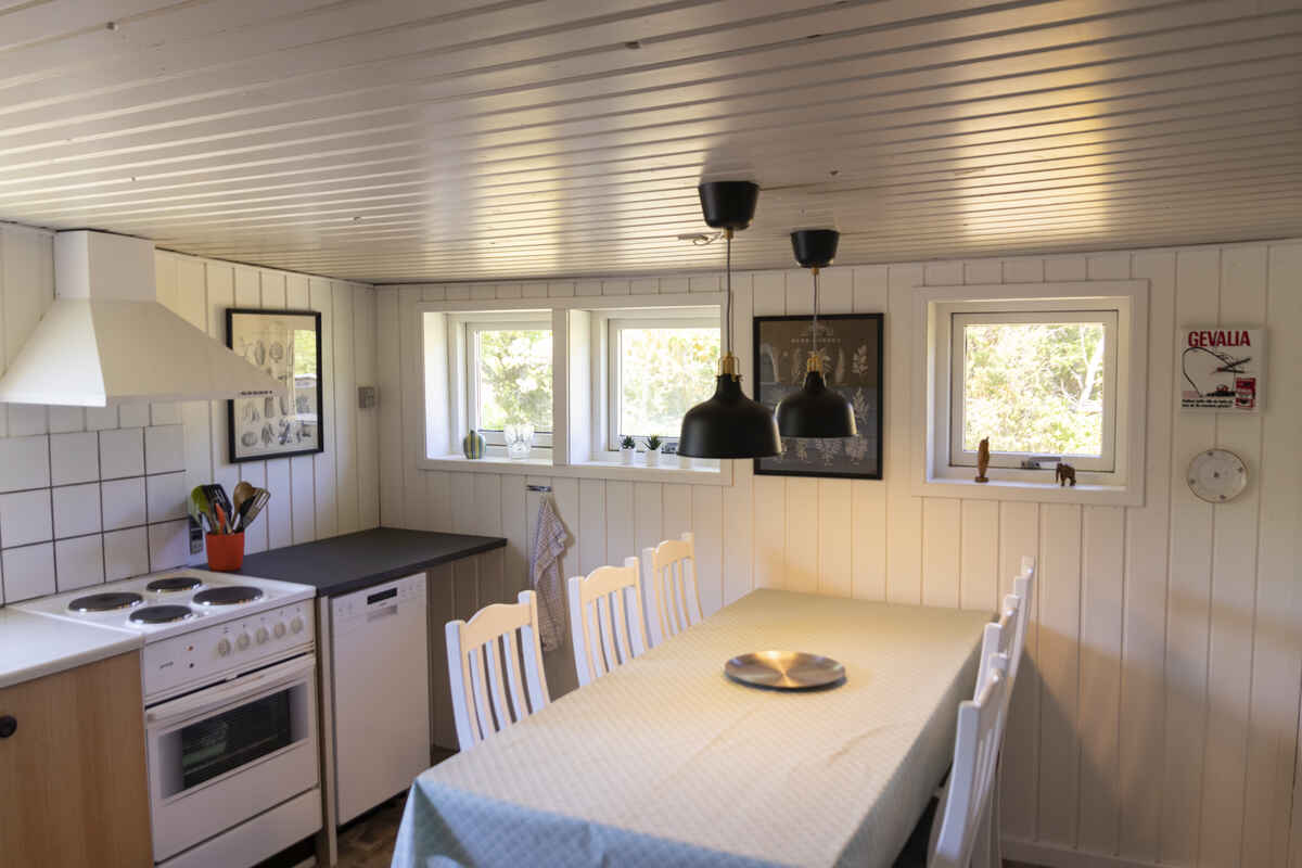 Hovedhuset er på 62 m2. Indrettet med en stor stue med sofa og lænestole. I stuen er der et musikanlæg samt et nyere 55” smart TV. Der er Wi-Fi dækning i hele huset. Herudover er der et køkken med komfur, mikroovn, kaffemaskine, elkedel og opvaskemaskine. I køkkenet er spiseplads til op til 7 personer samt en barnestol. Lille badeværelse med toilet samt bruseniche. Soveværelse med dobbeltseng samt værelse med egen udgang med enkeltseng dobbelt køje. I annexet er der to enkeltsenge.