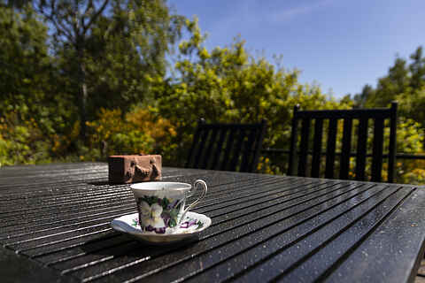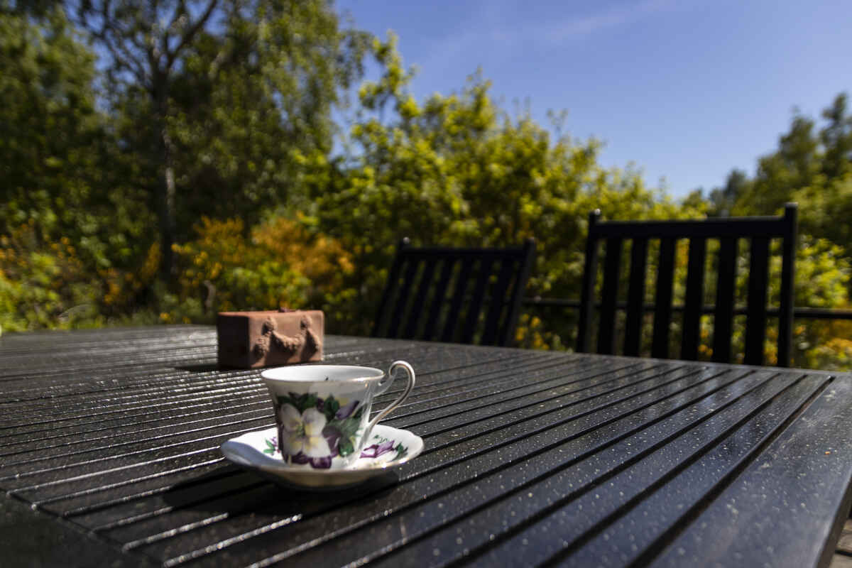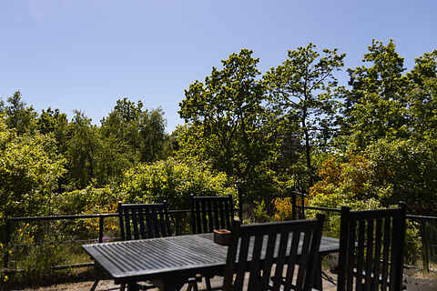 Sæt dig med en kop kaffe – og nyd solen og udsigten over naturgrunden på en af husets terrasser. Terrassen foran huset er afskærmet – så du er helt uforstyrret.