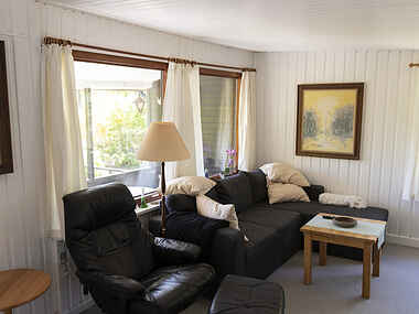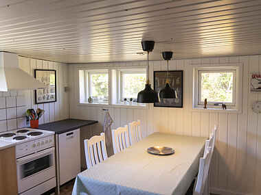Hovedhuset er på 62 m2. Indrettet med en stor stue med sofa og lænestole. I stuen er der et musikanlæg samt et nyere 55” smart TV. Der er Wi-Fi dækning i hele huset. Herudover er der et køkken med komfur, mikroovn, kaffemaskine, elkedel og opvaskemaskine. I køkkenet er spiseplads til op til 7 personer samt en barnestol. Lille badeværelse med toilet samt bruseniche. Soveværelse med dobbeltseng samt værelse med egen udgang med enkeltseng dobbelt køje. I annexet er der to enkeltsenge.